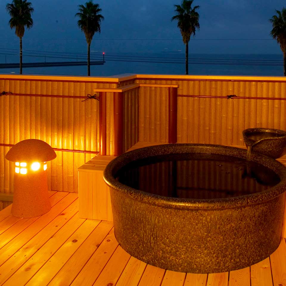 伊勢湾が一望出来る貸切露天風呂は、平日1回30分無料でご利用になれます。